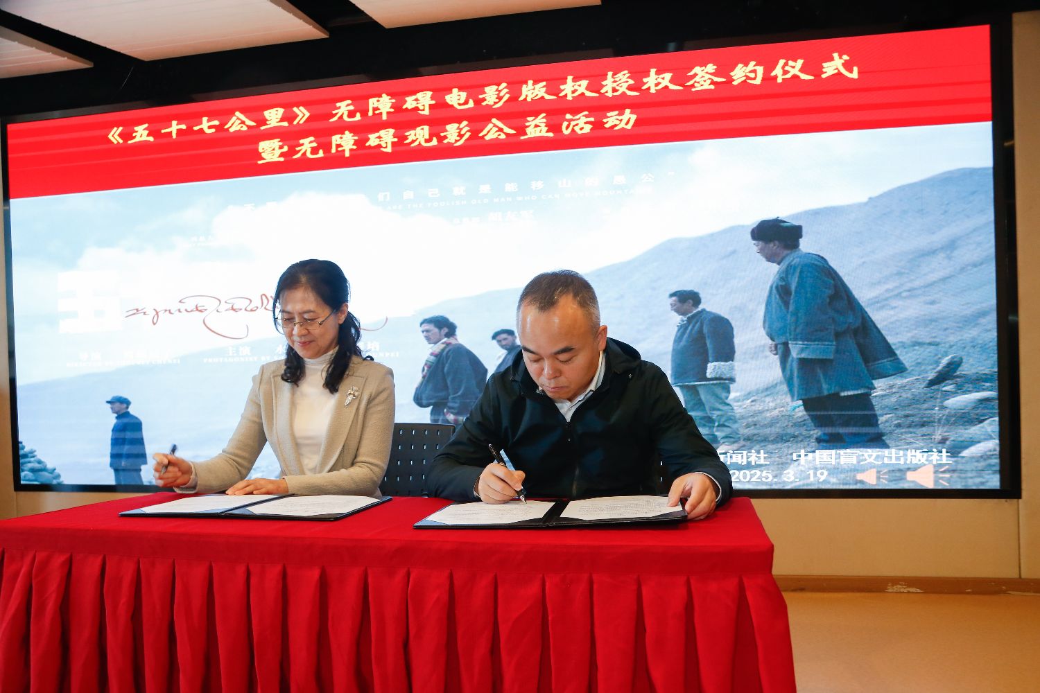 3月19日,《五十七公里》无障碍电影版权授权签约仪式在北京举行。中国新闻社青海分社无偿授权中国盲文出版社制作该影片的无障碍版本,为残障人士提供文化服务。